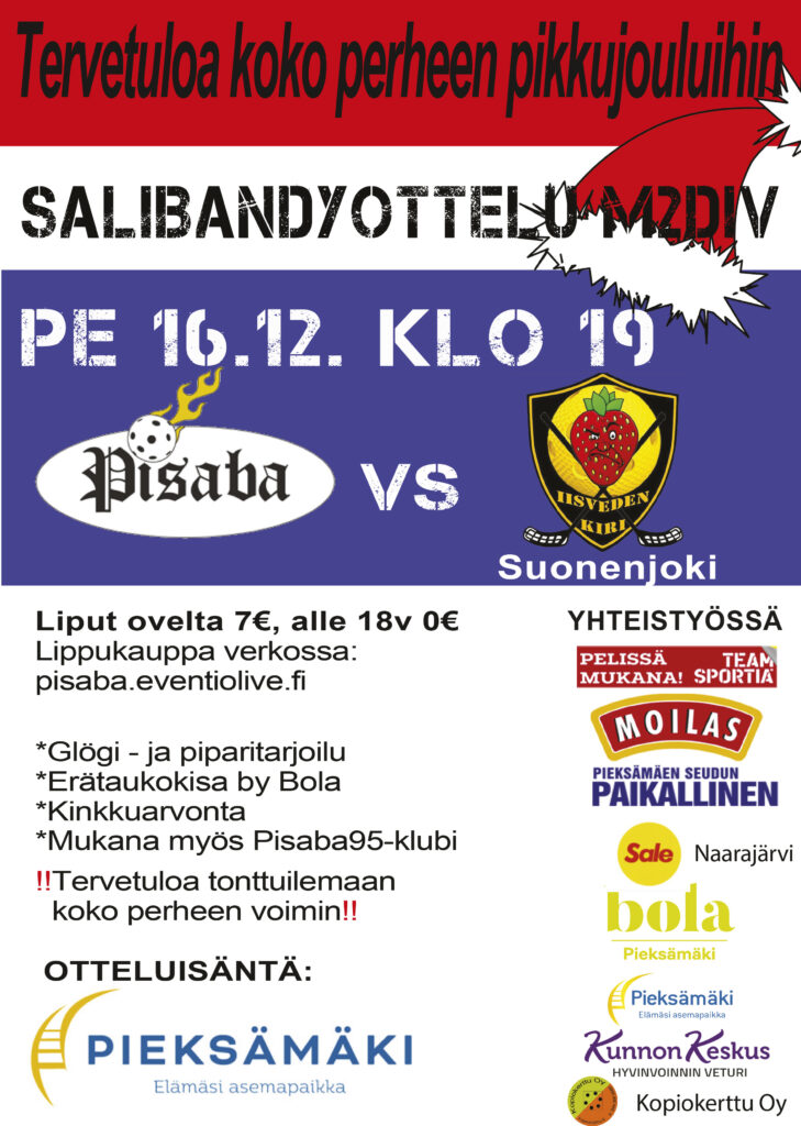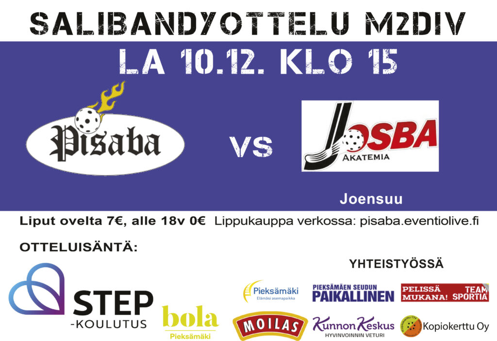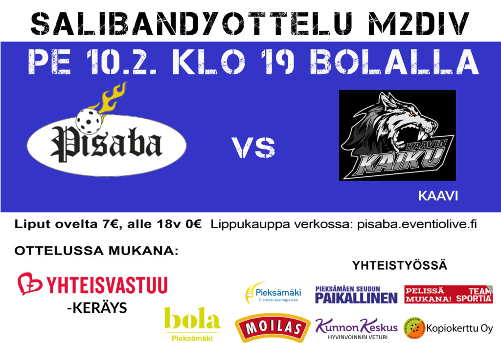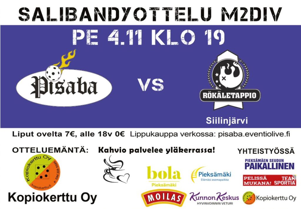Pisaba pelaa seuraavan kerran kotona pe 4.11. klo 19. Sitä ennen edari käy retken Outokummussa pe 21.10. Ottelu alkaa klo 19 Outokummun urheilutalolla. Ottelun tulosseuranta löytyy Tulospalvelusta